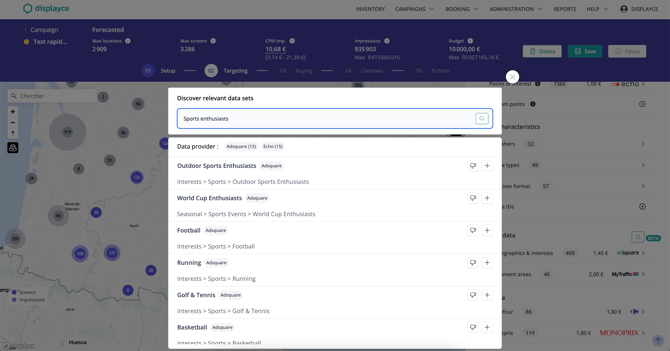 Through ECHO, our library of POIs, Adsquare, Monoprix and Carrefour segments, Displayce now offer several thousands segments to target your audience and it might be thought to find the perfect match. To easily find which segment best matches your audience research, we developed an intelligent search bar using Artifical Intelligence.